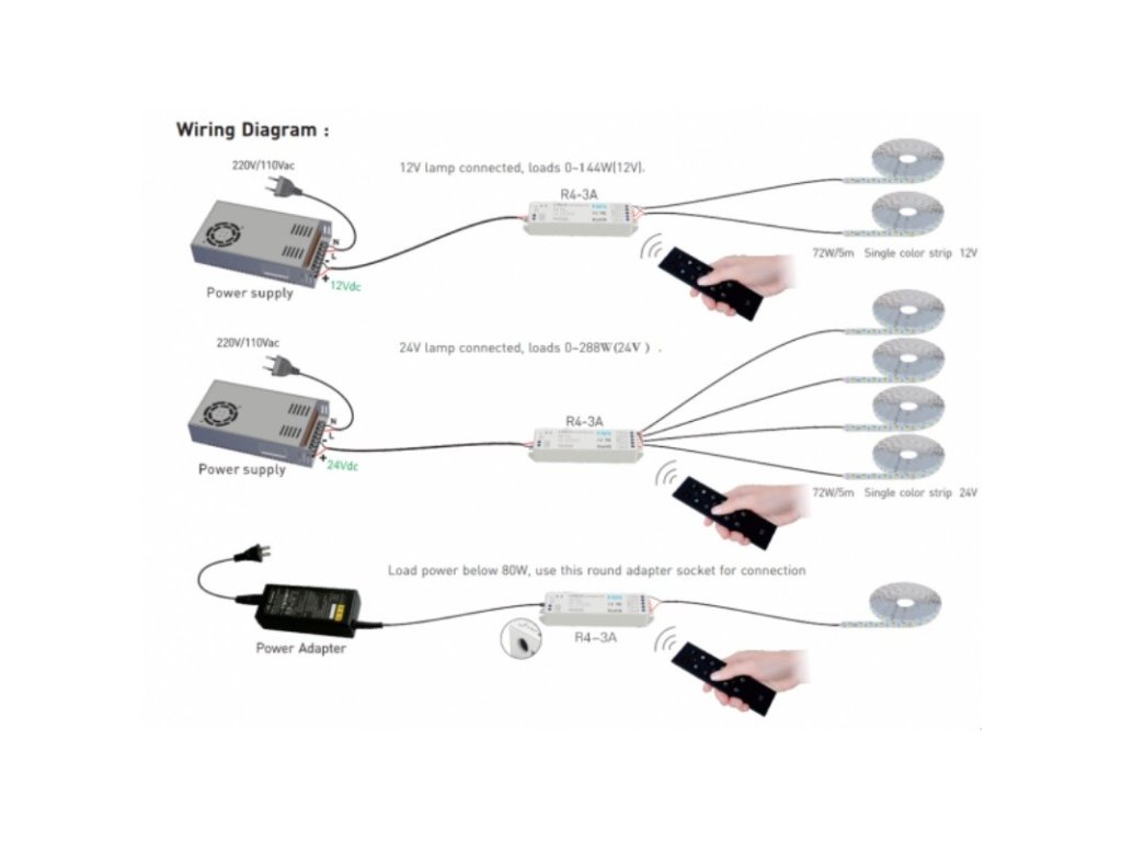 - Možnosť dopárovania ďalších receptorov R4 k diaľkovému ovládaniu a tak rozširovaniu veľkosti svetelnej aplikácie