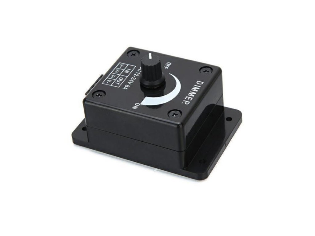 - Stmievač slúži k ovládaniu intenzity osvetlenia LED aplikácie, vhodný pre napäťové LED pásy, stmievateľné LED žiarovky MR16 (DC 12V)